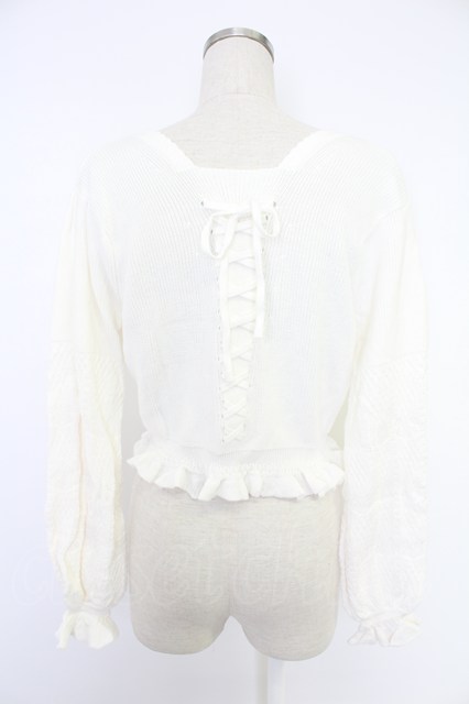 axes femme / バックレースアップルーズネックカーディガン ホワイト T-25-12-03-004-AX-TO-SA-ZT [2100060000026818-T-25-12-03-004-AX-TO-SA-ZT]