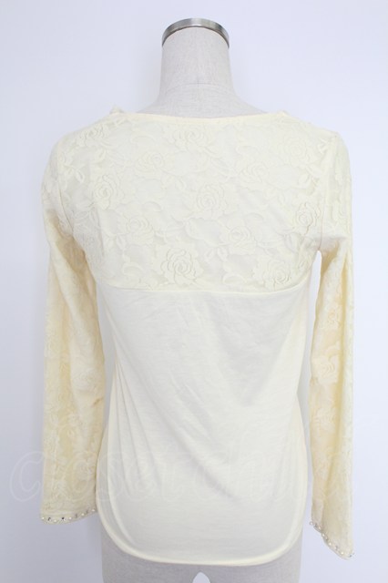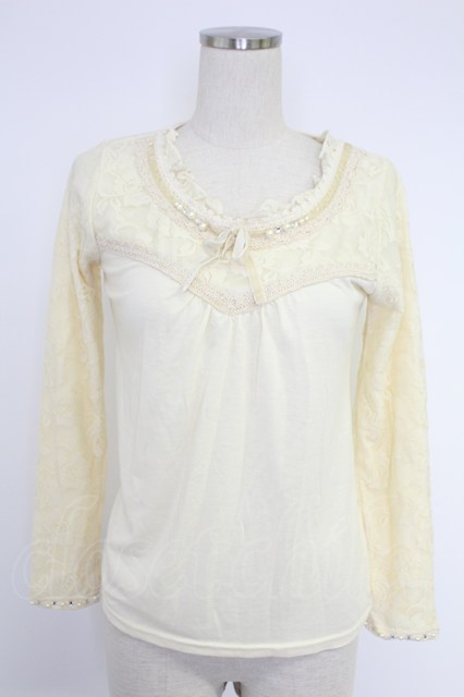 axes femme / レース切替袖ビジュー&パールカットソー M キナリ T-25-12-03-008-AX-TO-SA-ZT [2100060000026809-T-25-12-03-008-AX-TO-SA-ZT]