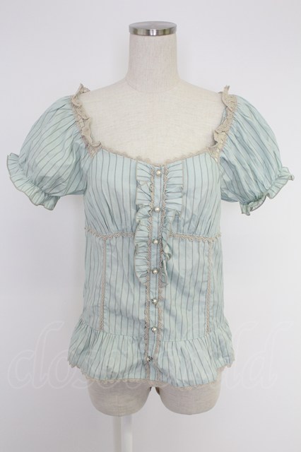 axes femme / 半袖パフスリーブブラウス グリーン T-25-12-03-011-AX-BL-SA-ZT [2100060000026807-T-25-12-03-011-AX-BL-SA-ZT]