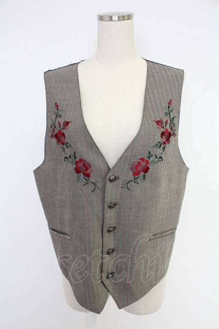 AXES-X / ローズ刺繍ヘリンボーンベスト XL クロ T-25-12-03-020-LO-TO-SA-ZT [2100060000043578-T-25-12-03-020-LO-TO-SA-ZT]