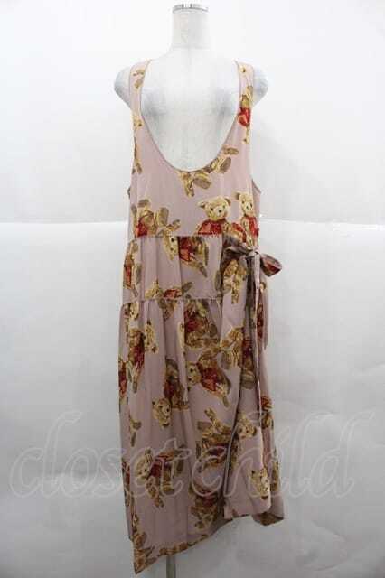 WONDERFUL WORLD / テディベア柄たくし上げジャンパースカート ピンク I-25-12-02-059-LO-OP-SA-ZI