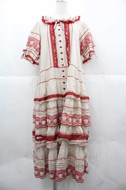 PINK HOUSE / いちごステッチレース使い水玉プリントワンピース 生成りX赤 I-25-12-02-066-LO-OP-SA-ZI [2100060000047085-I-25-12-02-066-LO-OP-SA-ZI]