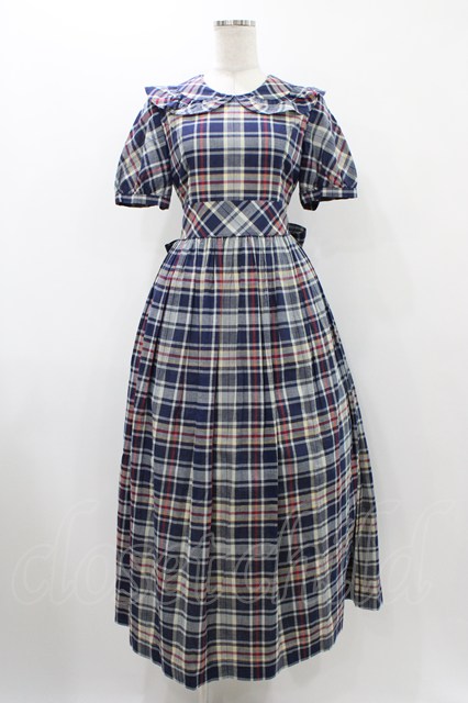 Jane Marple / フリルカラーチェックパフワンピース ブルー H-25-12-10-1024-JM-OP-KB-ZH [2100030000080357-H-25-12-10-1024-JM-OP-KB-ZH]