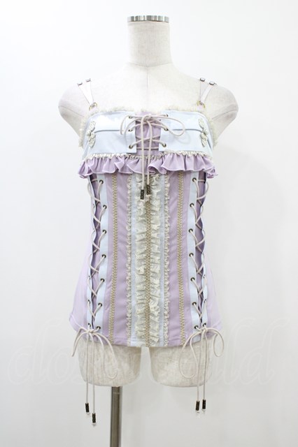 Ozz oneste / チャイナレースアップキャミソール ラベンダー×サックス×グレー H-25-12-10-1045-OO-TO-KB-ZH