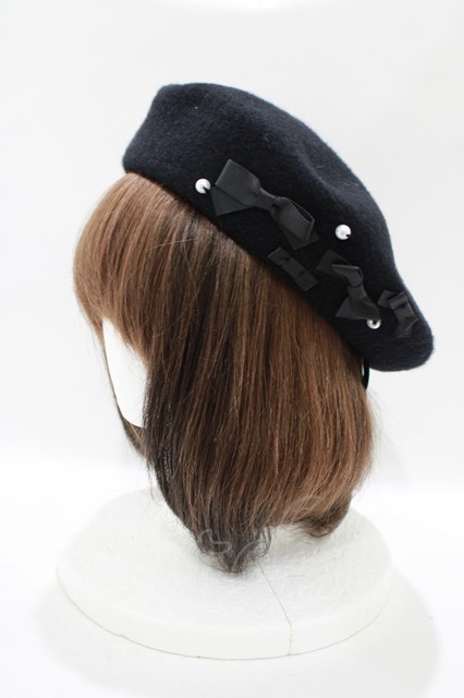 m petit by misako / AMミニリボンバスクベレー ブラック H-25-12-10-077-LO-AC-NS-ZH