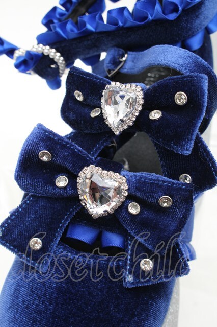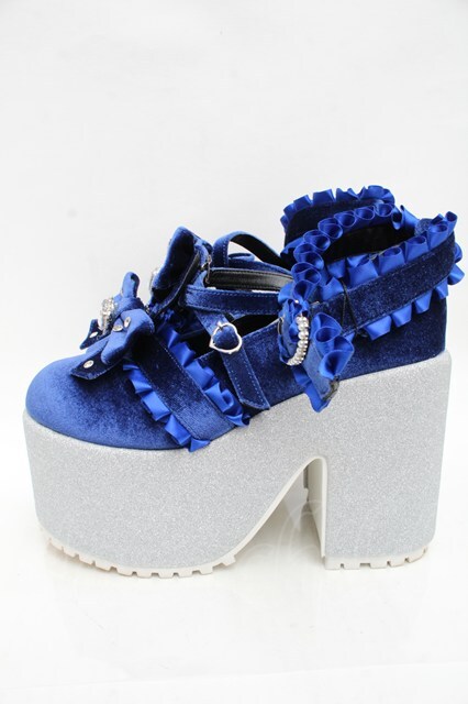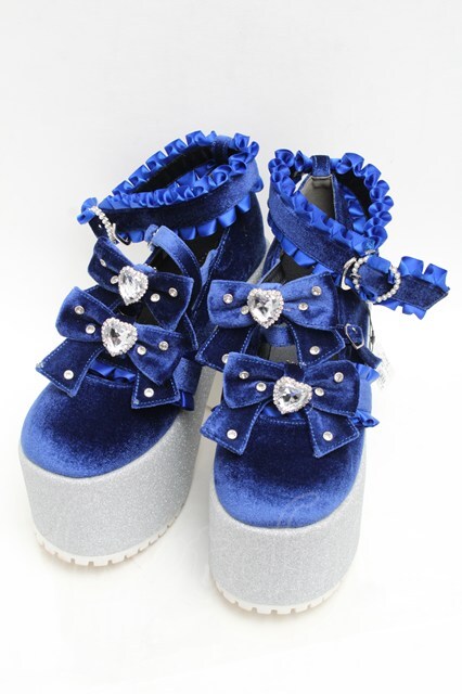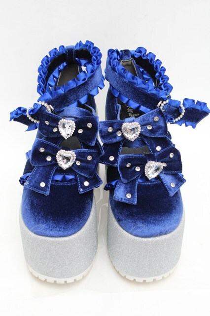 Ank Rouge / キラキラビジューベロアリボン厚底シューズ LL ブルー S-25-12-02-017-CA-SH-HR-ZS