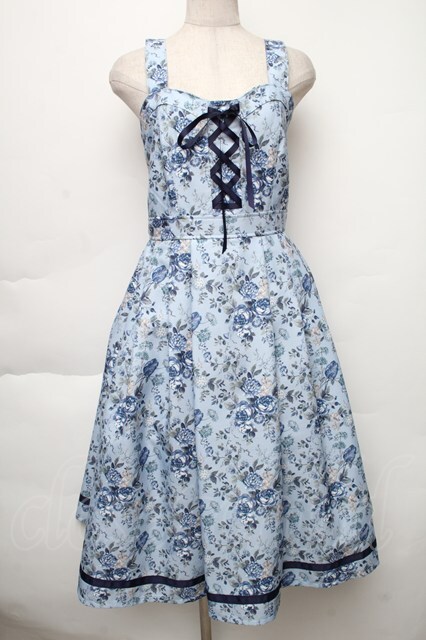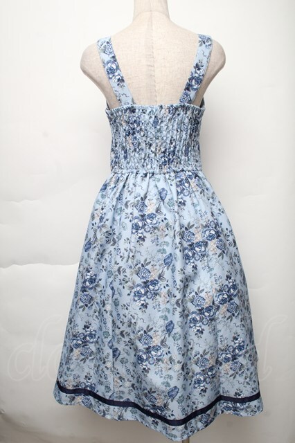 axes femme / ロマンティックローズ柄ジャンパースカート サックス S-25-12-02-039-AX-OP-AS-ZS
