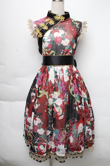 Triple fortune / 狛猫チャイナワンピース 黒×赤 S-25-12-02-048-EL-OP-HR-ZS [2100020000034855-S-25-12-02-048-EL-OP-HR-ZS]