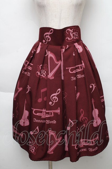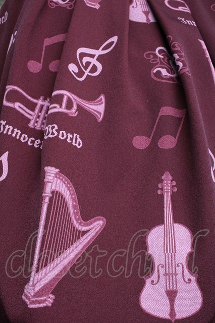 Innocent World / オーケストラの楽器柄スカート ワイン S-25-12-02-054-IW-SK-AS-ZS