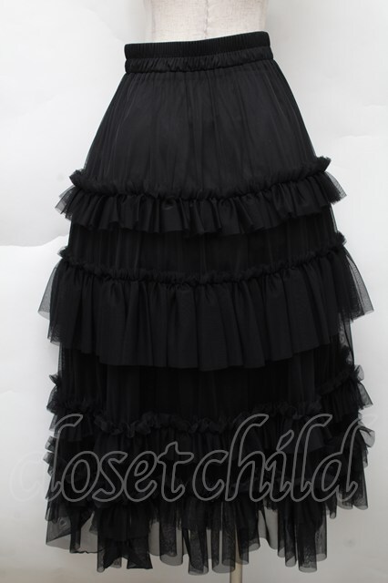 axes femme / フリルチュールティアードスカート 黒 S-25-12-02-058-AX-SK-AS-ZS