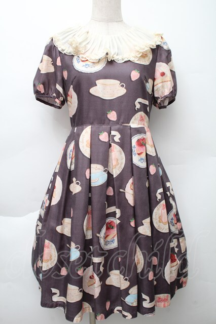 Leur Getter / Strawberry Party袖付ワンピース ダークグレー S-25-12-02-060-LU-OP-HR-ZS