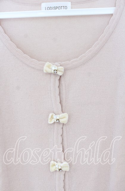 LODISPOTTO / ビジューベロアリボンカーディガン ピンクベージュ O-25-12-02-1018-LO-TO-IG-OS