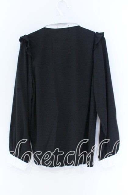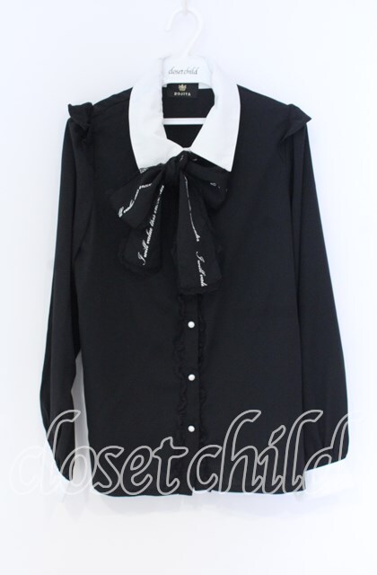 Rojita / ロゴリボンブラウス クロ×シロ O-25-12-02-1031-LO-OP-IG-OS