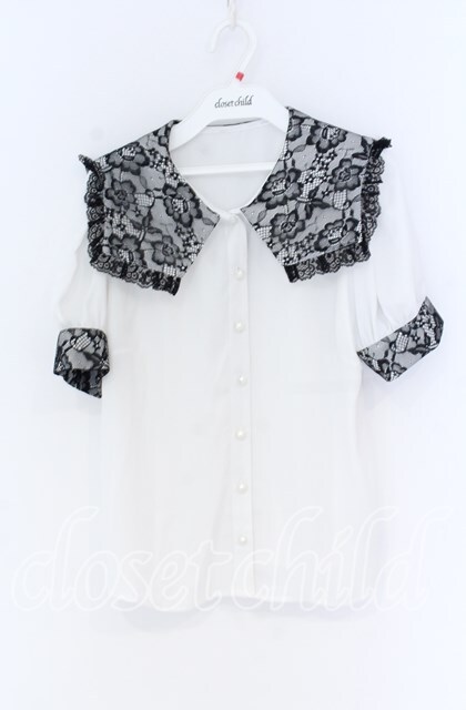 Ank Rouge / レースセーラーカラーブラウス シロ×クロ O-25-12-02-1065-CA-BL-IG-OS