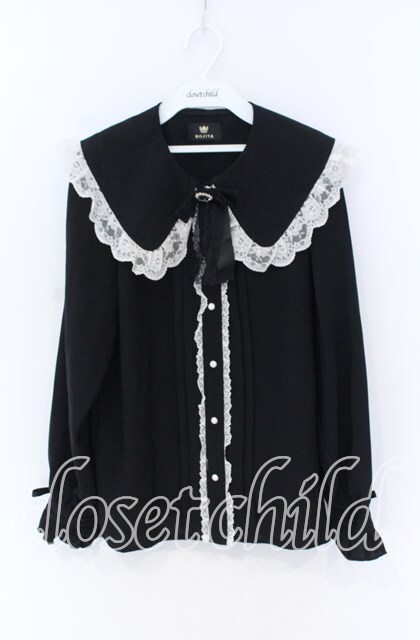 Rojita / リボンブローチバックレースアップブラウス クロ×シロ O-25-12-02-1064-LO-BL-IG-OS