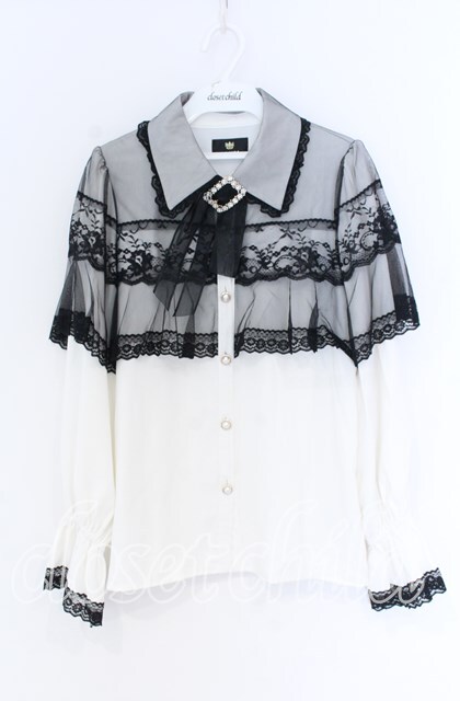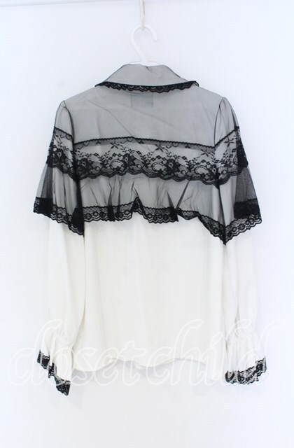 Rojita / チュールシアーケープブラウス シロ×クロ O-25-12-02-1066-LO-BL-IG-OS