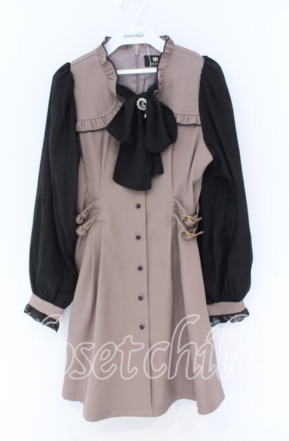 Rojita / BIGリボン配色ワンピース ピンク×クロ O-25-12-02-1008-LO-OP-IG-OS [2100080000066853-O-25-12-02-1008-LO-OP-IG-OS]
