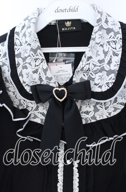 Rojita / ハートブローチ付きレース切り替えブラウス クロ×シロ O-25-12-02-1074-LO-BL-IG-OS
