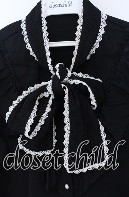 Rojita / レーシーリボン袖ボリュームブラウス クロ×シロ O-25-12-02-1075-LO-BL-IG-OS