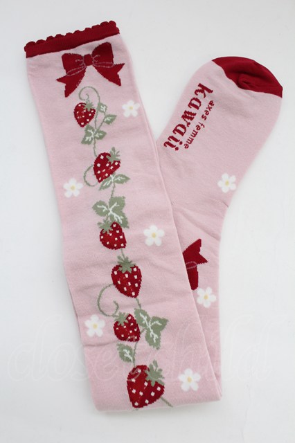 axes femme kawaii / いちご柄オーバーニー ピンク T-25-12-04-007-AX-ZA-SA-ZT