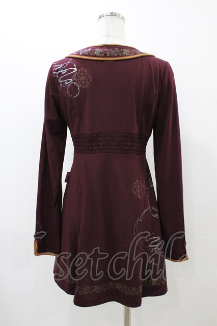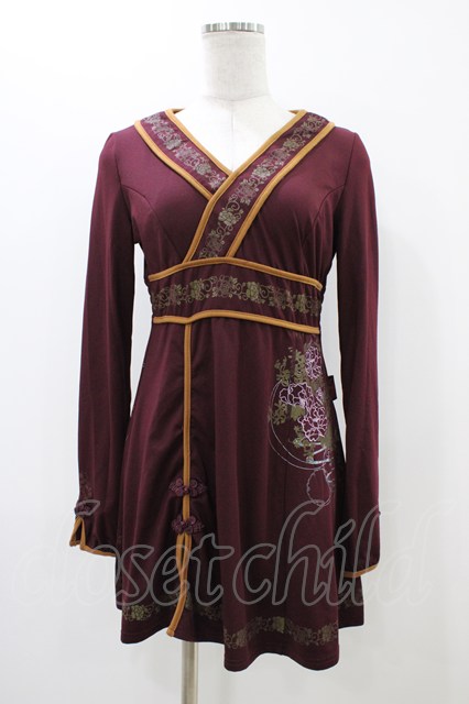 Ozz oneste / 和チャイナチュニックトップス ボルドー H-25-12-09-1050-OO-TO-KB-ZH