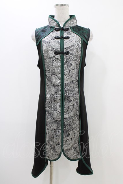 Qutie Frash / チャイナチュニック 黒×グリーン H-25-12-09-1021-QU-TO-KB-ZH