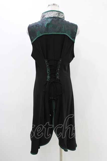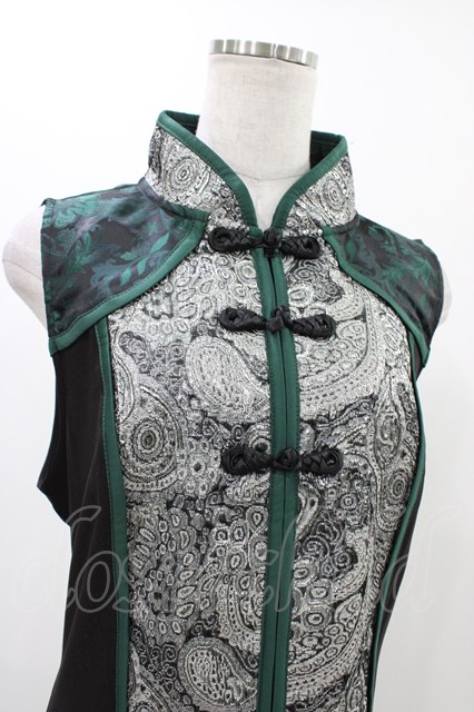 Qutie Frash / チャイナチュニック 黒×グリーン H-25-12-09-1021-QU-TO-KB-ZH [2100030000044317-H-25-12-09-1021-QU-TO-KB-ZH]