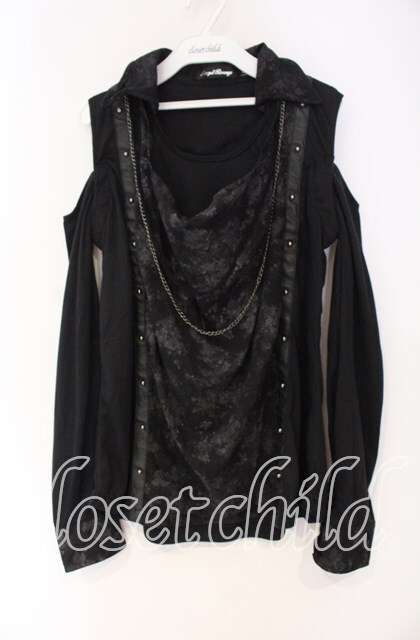 SEX POT ReVeNGe / オフショルドレープフラワー切り替えカットソー M ブラック O-25-12-04-011-SP-TO-YM-OS [2100080000065556-O-25-12-04-011-SP-TO-YM-OS]