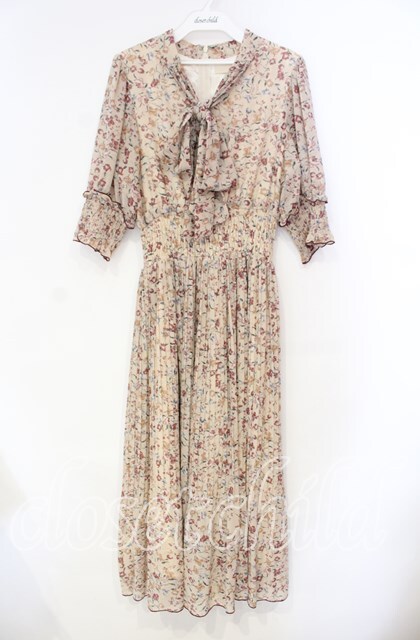 An MILLE / フラワーリボンタイプリーツワンピース ベージュ O-25-12-04-084-EL-OP-OW-OS [2100080000066510-O-25-12-04-084-EL-OP-OW-OS]