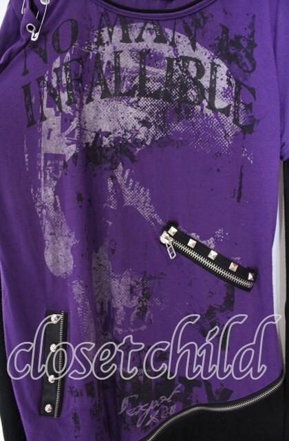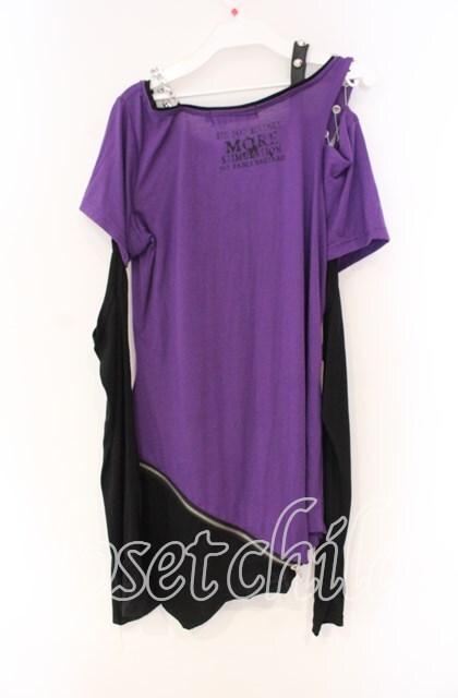 SEX POT ReVeNGe / アームカバー付きアシンメトリーカットソー S ブラックxパープル O-25-12-04-012-SP-TO-YM-OS