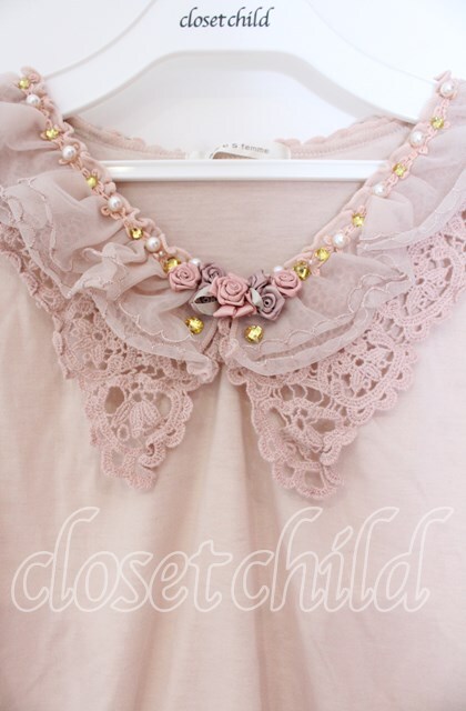 axes femme / コットンレース襟付タンク M ピンク O-25-12-04-003-AX-TO-OW-OS