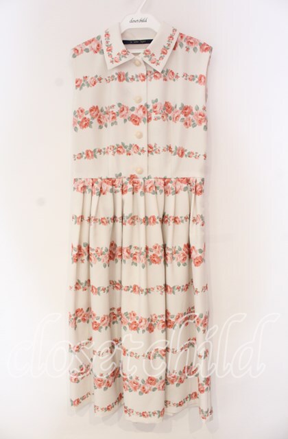 an another angelus / ローズボーダープリントノースリーブワンピース F アイボリー O-25-12-04-023-CA-OP-OW-OS