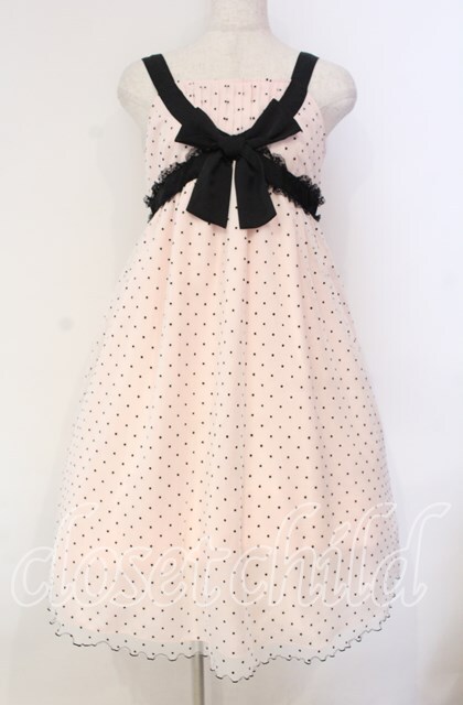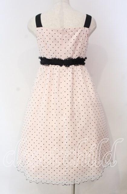Emily Temple cute / フロッキードットチュールジャンパースカート ピンク×クロ O-25-12-04-079-ET-OP-IG-OS