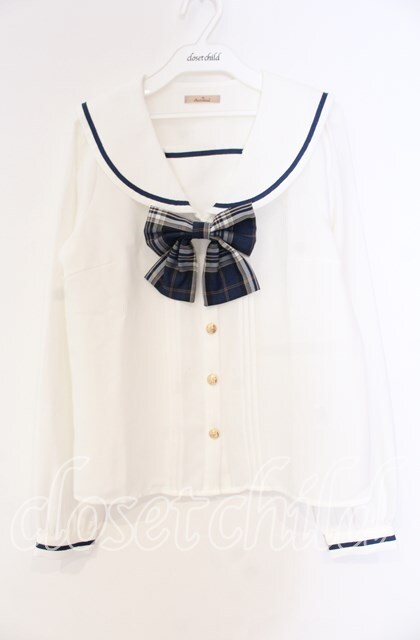 Amavel / NostalgicCheckセーラーブラウス F シロ×ネイビー O-25-12-04-035-CA-BL-OW-OS [2100080000066499-O-25-12-04-035-CA-BL-OW-OS]