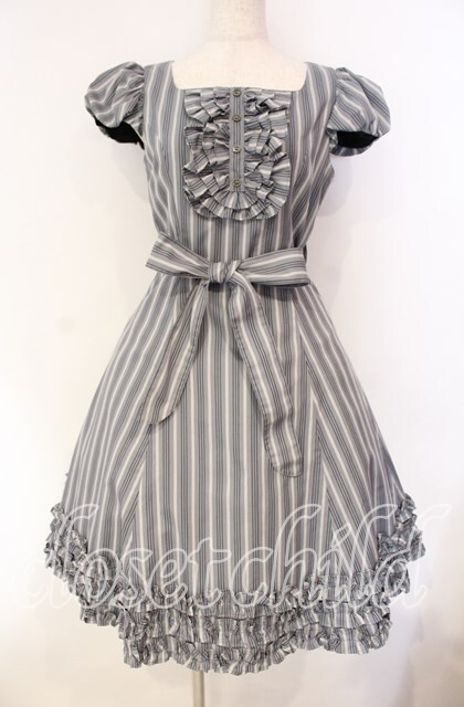 Victorian maiden / レジメンタルストライプフリルドレス グレー O-25-12-04-066-CL-OP-IG-OS