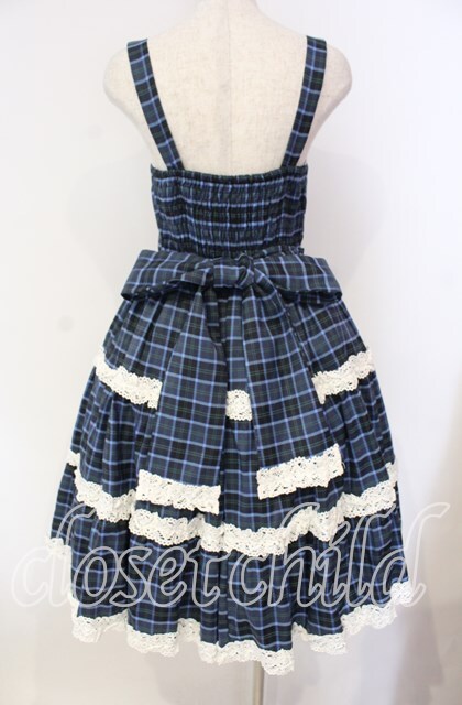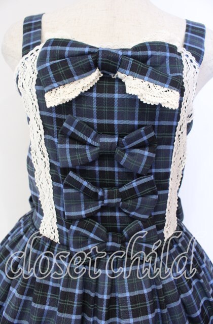 axes femme kawaii / タータンチェックジャンスカ M アオ O-25-12-04-059-AX-OP-OW-OS