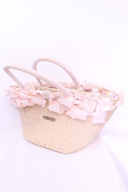 LIZ LISA / リボン配色カゴバッグ ナチュラル×ピンク O-25-12-04-1086-LO-BG-OW-OS