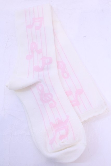 Angelic Pretty / メロディドールオーバーニーソックス シロ×ピンク O-25-12-04-1051-AP-ZA-OW-OS [2100080000066525-O-25-12-04-1051-AP-ZA-OW-OS]