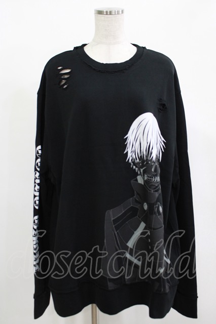 QOOZA / 東京喰種×QOOZA金木研 ダメージスウェット ブラック H-25-12-11-041-PU-TO-KB-ZH