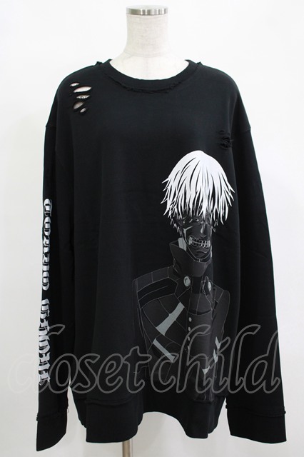 QOOZA / 東京喰種×QOOZA金木研 ダメージスウェット ブラック H-25-12-11-042-PU-TO-KB-ZH