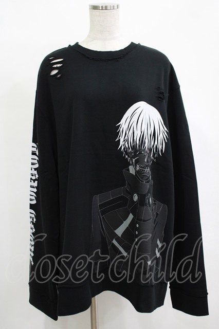 QOOZA / 東京喰種×QOOZA金木研 ダメージスウェット ブラック H-25-12-11-045-PU-TO-KB-ZH