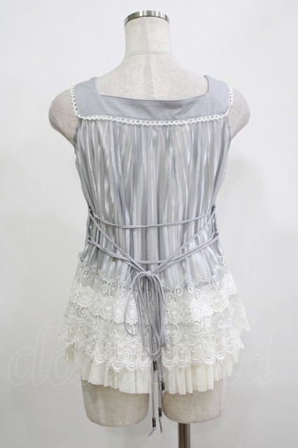 Ozz oneste / 薔薇刺繍シアーストライプトップス グレー H-25-12-11-048-OO-TO-KB-ZH