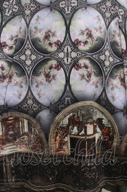 Ozz oneste / 宗教画プリントジャンパースカート ブルーグレー H-25-12-11-009-OO-OP-KB-ZH