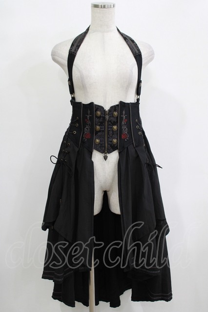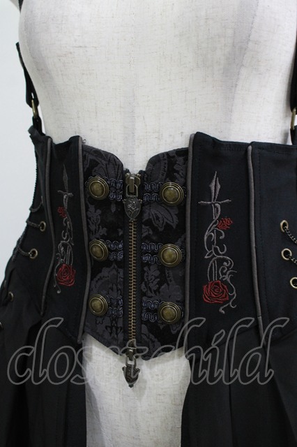 Ozz oneste / ホルター付薔薇刺繍オーバーコルセット ブラック H-25-12-11-033-OO-SK-KB-ZH