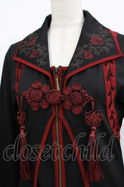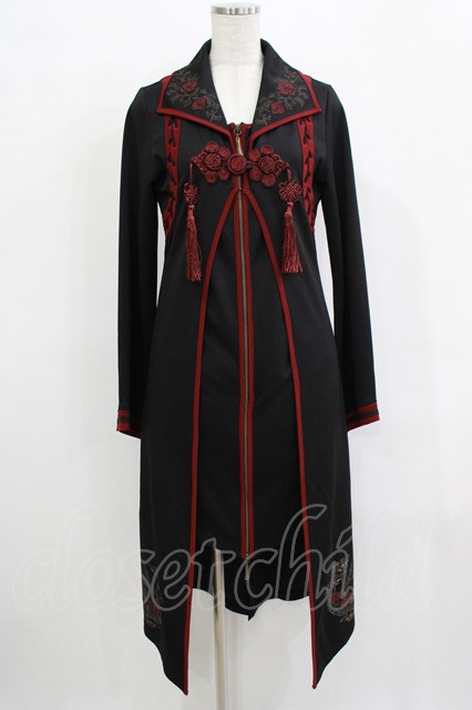 Ozz oneste / レイヤード風ロングカーディガン 黒×赤 H-25-12-11-016-OO-TO-KB-ZH