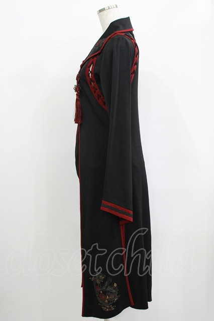 Ozz oneste / レイヤード風ロングカーディガン 黒×赤 H-25-12-11-016-OO-TO-KB-ZH [2100030000069631-H-25-12-11-016-OO-TO-KB-ZH]