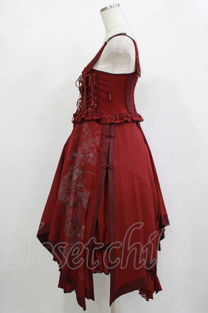 Ozz oneste / 和チャイナイレギュラーフリルワンピース ボルドー H-25-12-11-006-OO-OP-KB-ZH