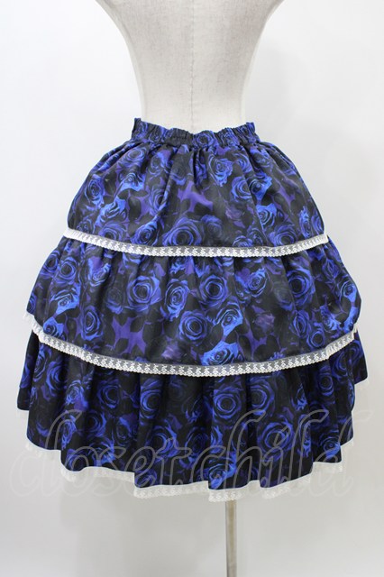Moi-meme-Moitie / 青薔薇3段ティアードスカート ブルー H-25-12-12-027-MO-SK-KB-ZH