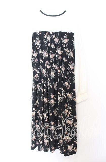 axes femme / ビスチェ切替バラ柄ワンピース M クロ×アイボリー O-25-12-05-085-AX-OP-IG-OS