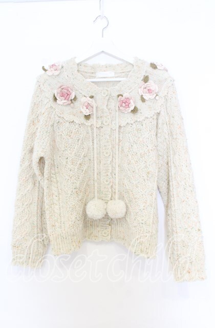 PINK HOUSE / バラモチーフ付きヨークニットカーディガン アイボリー O-25-12-05-017-LO-OP-IG-OS [2100080000066725-O-25-12-05-017-LO-OP-IG-OS]